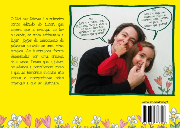 O ‘Rei das Rimas’ é o primeiro conto editado do autor, que espera que a criança, ao ler ou ouvir, se sinta estimulada a fazer jogos de associação através de uma rima simples. As ilustrações foram desenhadas por uma criança de 6 anos. Penso que ajudará os adultos a perceberem como é que as histórias infantis são vistas e interpretadas pelas crianças a que se destinam.