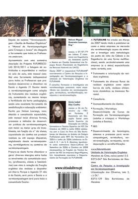 Depois do sucesso “Vermicompostagem – Gestão de Resíduos Orgânicos” e “Manual de Vermicompostagem para Crianças e Jovens” eis chegado a ferramenta que todos os Professores ansiavam. Apresentado com uma extensiva descrição do Projecto FUTURESCOLAS 2010/2011 e listagem de actividades e experiências a realizar na sala de aula, este manual constitui uma ferramenta indispensável para todos os Professores que pretendam desenvolver e dinamizar na Escola a Agenda 21 Escolar tendo a vermicompostagem como solução de tratamento dos resíduos orgânicos, aumentando ao mesmo tempo a fertilidade da horta pedagógica, sendo uma excelente ferramenta de sensibilização e educação ambiental. Escrito por Nelson Lourenço, reconhecido e conceituado especialista, este manual inclui diversas formas, processos e métodos de desenvolver práticas de vermicompostagem, com maior ou menor grau de investimento, em função do n.º de alunos, capacidade da cantina em produzir resíduos ou até espaço disponível, englobando desde vermicompostores, vermidigestores ou canteiros de vermicompostagem. Procura-se desta forma dinamizar e gerar diversas sinergias entre todos os envolventes da comunidade escolar, (professores, alunos e funcionários) com vista à redução da fracção orgânica dos resíduos a depositar em Aterro. Porque a Agenda 21 não é da Escola, será para a Escola e a vermicompostagem será para toda a comunidade Escolar.
